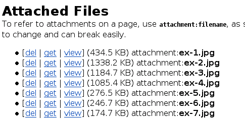 To refer to attachments on a page, use attachment:filename, as shown below in the list of files. Do NOT use the URL of the [get] link, since this is subject to change and can break easily.